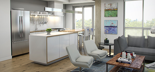 Constructed of concrete, the sixstorey building will incorporate historic accents like wide-plank wooden floors, exposed concrete columns and industrial-style sliding slab doors help complete the authentic loft ambience.