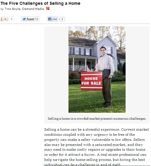 (Info from The Five Challenges of Selling a Home, Home Guides)