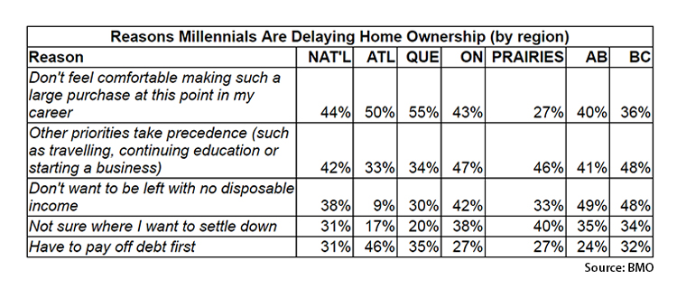 According to a report released by the Bank of Montreal, while 60 per cent of millennials surveyed are tired of paying rent, 70 per cent would rather delay homeownership until they can get what they really want in a home.