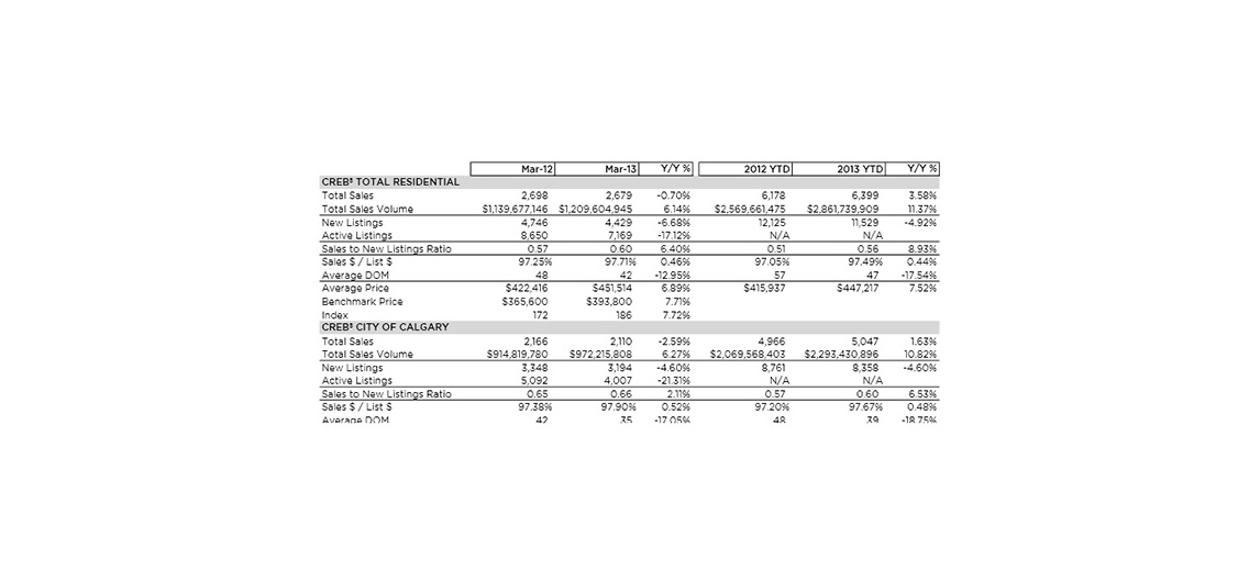 The inventory of active homes for sale in Calgary are the lowest March levels in more than five years. The decline in new listings hampered resale sales growth, which declined by more than two per cent in March compared to March 2012.